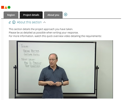 Ajoutez des éléments à votre formulaire à l’aide d’un simple éditeur visuel drag-and-drop. Ajoutez du contenu, des images et toute information dont vos participants ont besoin pour compléter leur candiature facilement.