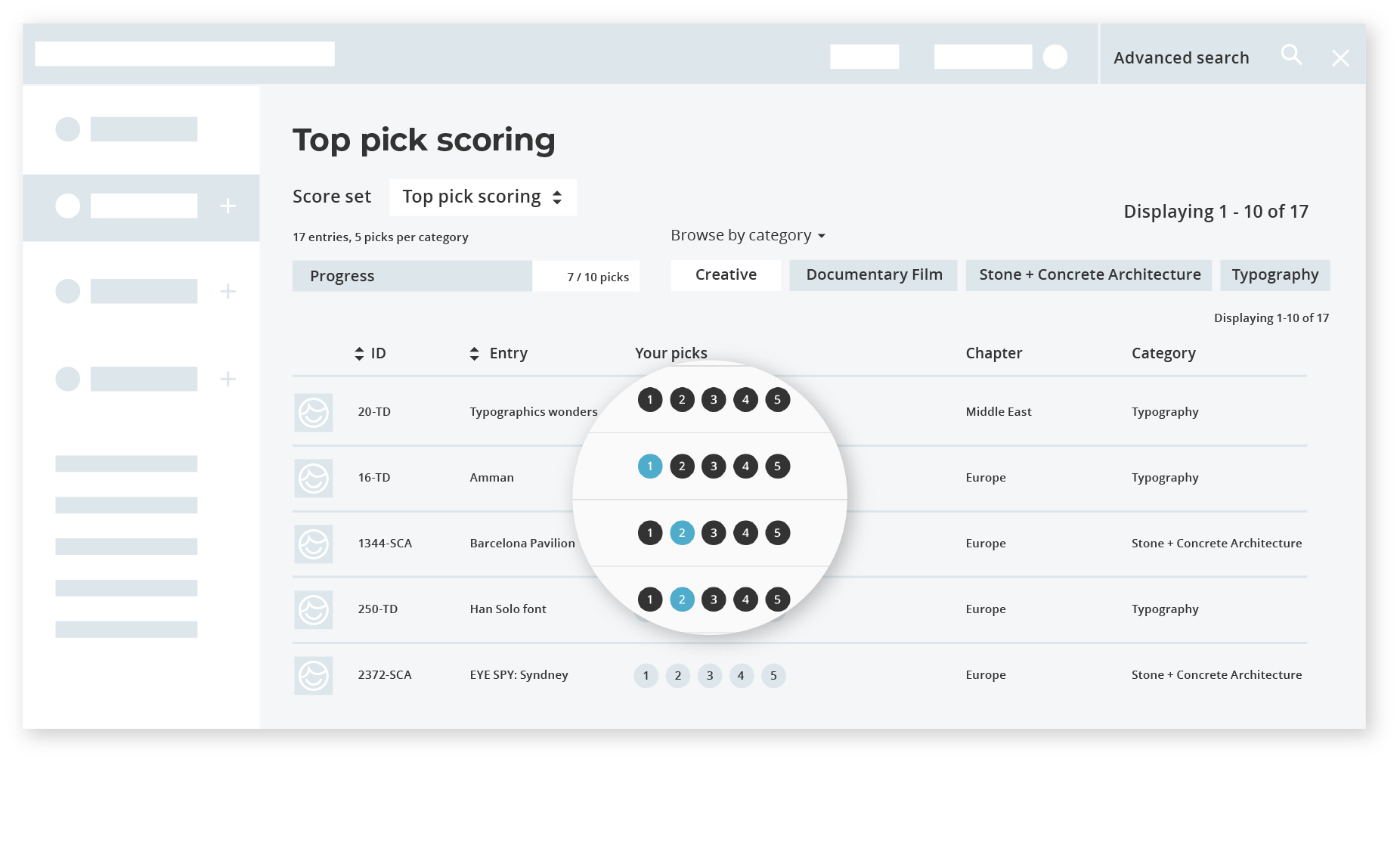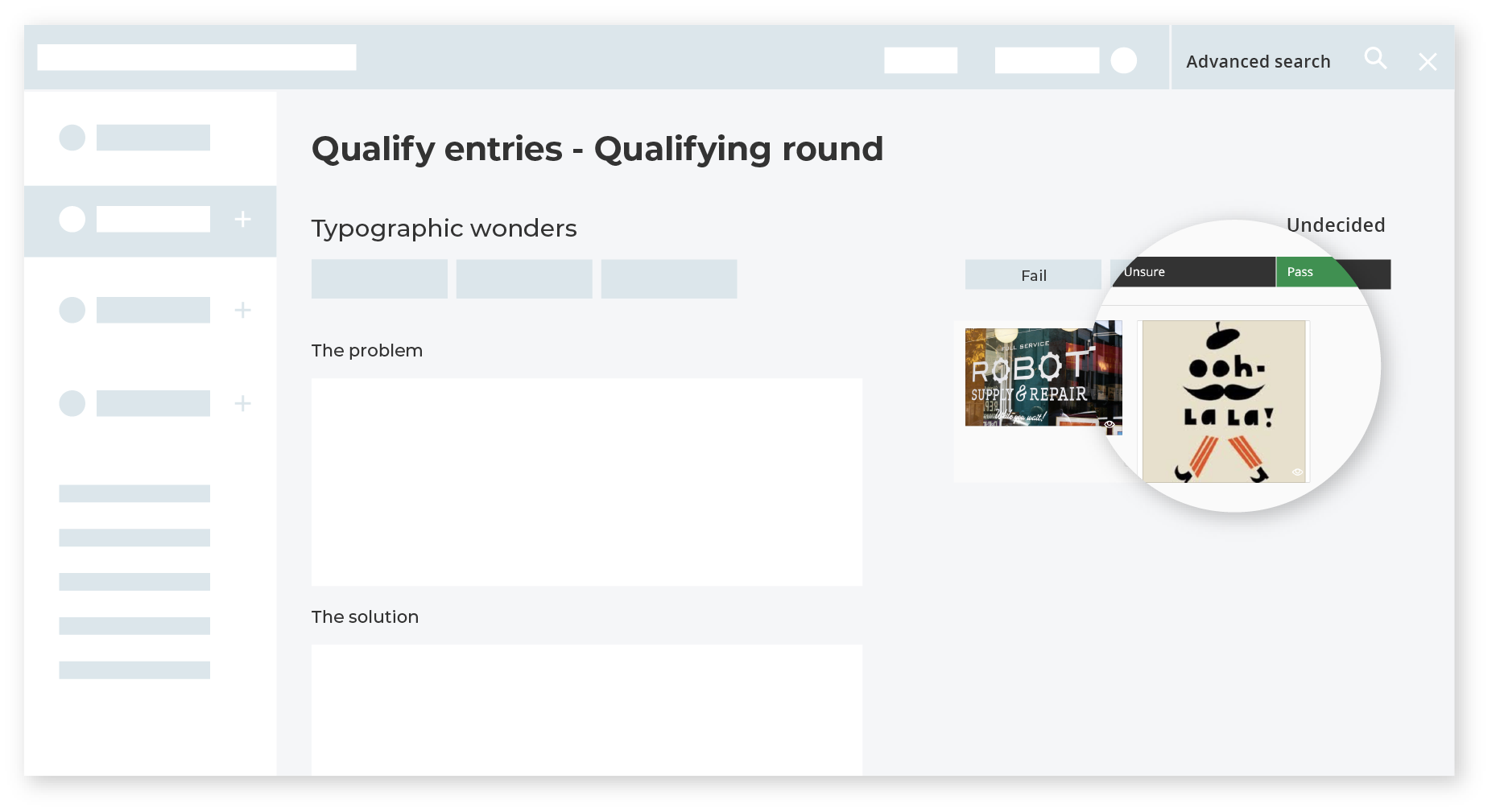 Tous nos modes d’évaluation sont conçus pour être rapides, ergonomiques et faciles à utiliser pour le jury. Une belle interface présente les candidatures sous leur meilleur jour. Et vous contrôlez qui a accès à quelle partie de l’évaluation, quand, et si ce sont des utilisateurs exclusivement invités ou le public.