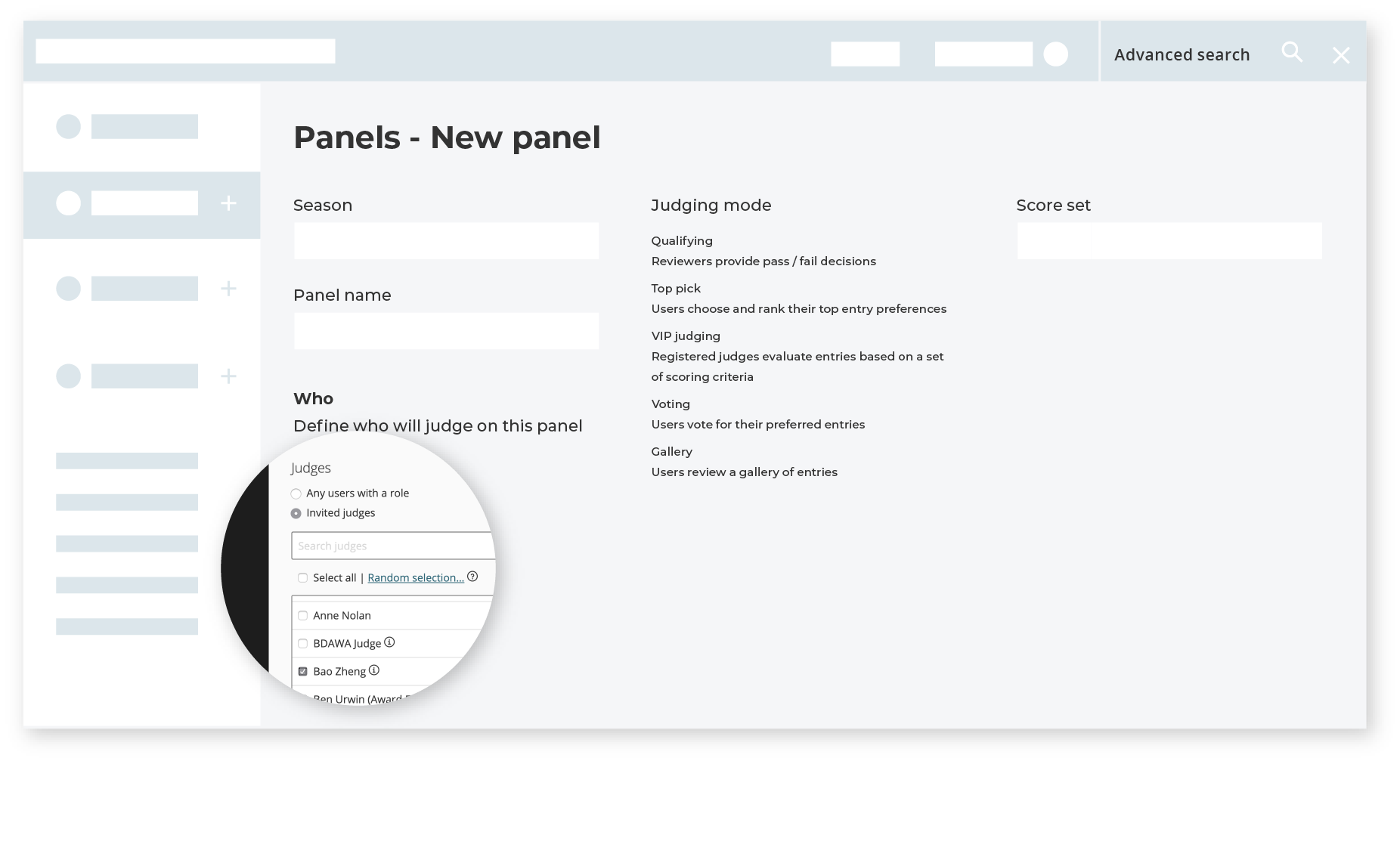 Nos panels de jurys vous permettent de définir qui juge quoi, en cochant seulement quelques cases. Et parce que les éléments de votre programmes évoluent, vous pouvez modifier les panels de jury à tout moment. Attribuez un jury VIP invité à des panels spécialisés. Ou créez un panel avec toute votre communauté (ou même le public !) pour les inviter à participer à l’évaluation des candidatures.